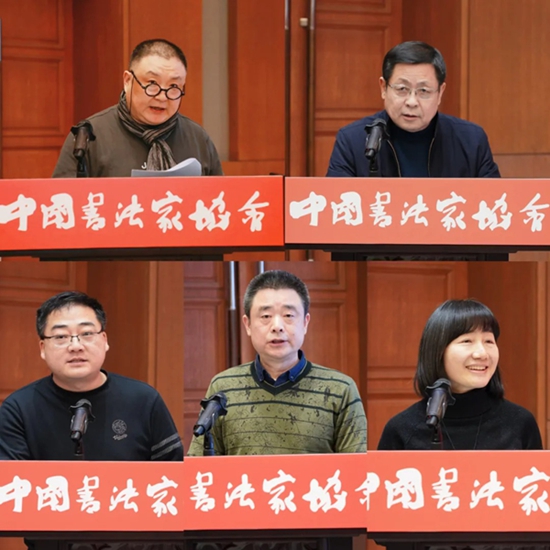 山东省书协王瑞、河南省书协姜宝平、江西省书协刘帅、上海市书协章宏伟、北京书协田静分别围绕会员发展、展览组织、文艺惠民、对外交流、学术建设方面作交流发言。