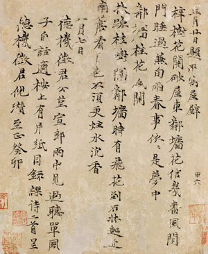 元 倪瓒 楷书题所寓屋壁诗二首呈德机征君 纵27.2cm 横25.5cm 吉林省博物院藏