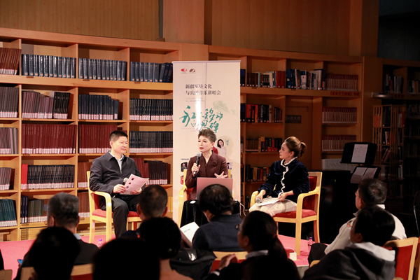 3月14日,由新疆生产建设兵团文联、新疆生产建设兵团第二师铁门关市、国家大剧院共同主办的“永不移动的界碑——新疆军垦文化与兵团音乐讲唱会”在国家大剧院艺术资料中心举行。此次讲唱会是新疆军垦文化与兵团音乐首次以专场形式走进国家大剧院,更是兵团文艺创作在国家级艺术殿堂的集中展示。