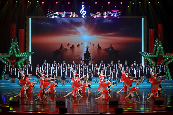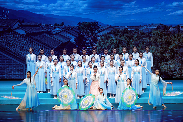 舞台上,小兄妹主持人串联起整场演出。哥哥像一位小导游,妹妹活泼地不停问着“为什么”。两人就像进行一场春日游学,带着观众进行一场边走边唱的旅行。从江南水乡的《好时光》到西湖边的《饮湖上初晴后雨》,从老北京的《春风跑过古城门》到歌唱56个民族的《星星连心一家亲》,小演员们用歌声表达对祖国大好河山的热爱。