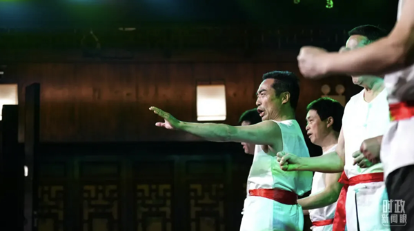 常德河街,鸳鸯走马楼上演常德高腔《穆桂英挂帅》和澧水船工号子。(总台央视记者许永松、国广记者李晋拍摄)