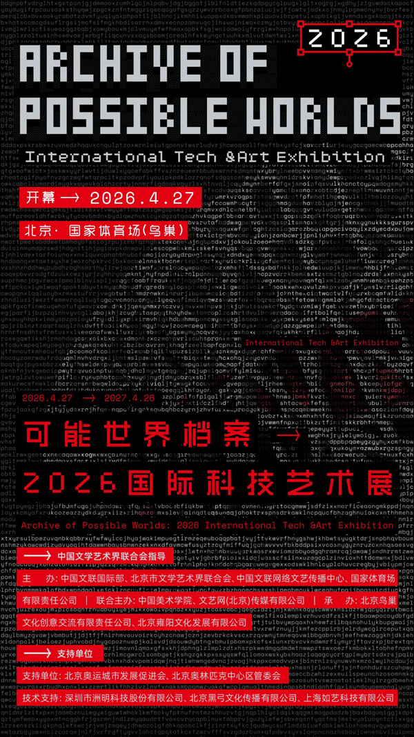 4月27日,由中国文联指导,中国文联国际联络部、北京市文联、中国文联网络文艺传播中心、国家体育场有限责任公司主办,中国美术学院、文艺网(北京)传媒有限公司联合主办的“可能世界档案:2026国际科技艺术展”在国家体育场(鸟巢)科技艺术中心开幕,鸟巢科技艺术中心同步启幕。
