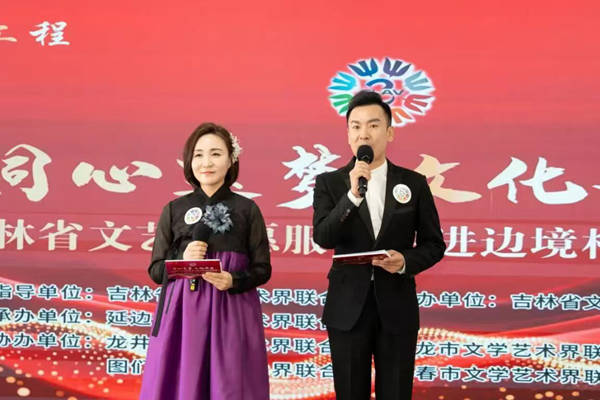 3月30日至4月1日,“同心逐梦 文化兴边”吉林省文艺志愿服务活动先后走进延边州的龙井市开山屯镇爱民村、和龙市南坪镇龙渊村、图们市月晴镇石建村、珲春市三家子满族乡立新村等6个边境村,为周边20个边境村的村民送上了一场场接地气、有温度的文艺惠民演出。此次活动由吉林省文学艺术界联合会指导,吉林省文艺志愿服务中心主办,延边州文学艺术界联合会承办,龙井、和龙、图们、珲春四市文联协办。吉林省文联党组成员、副主席李彦生出席活动。