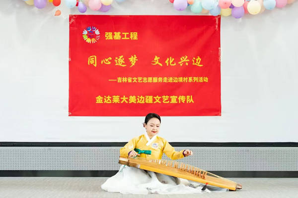 演出伊始,朝鲜族民歌《桔梗谣》婉转悠扬,伽倻琴演奏空灵动人,与优美的长鼓舞交相辉映;长唢呐独奏《热风》气势磅礴、声彻云霄;伴着朝鲜族歌曲《我们是一家人》的动人旋律,台下乡亲们纷纷起身共舞……一个个极具朝鲜族特色的节目让乡亲们倍感亲切,瞬间拉近了与观众的距离,现场掌声不断。龙井市开山屯镇的乡亲们也带来舞蹈《迎酒欢歌》《山河美》,用欢快舞姿抒发幸福生活的喜悦,礼赞祖国边疆的壮丽风光。