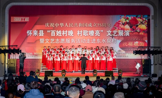 怀来县沙城镇东水泉村位于沙城镇城区东南部,全村850户,2353人;总面积9.2677平方千米,耕地面积134.47公顷。近年来,该村立足独特的区位、产业、交通和历史文化优势,以“艺术赋能乡村振兴”为核心驱动力,大力发展特色乡村旅游产业。作为怀来县文联“文艺进万家 健康你我他”新时代文明实践文艺志愿服务项目实施示范带动地,东水泉村积极组建存瑞文艺志愿服务小分队,开展文艺赋能乡村发展志愿活动。四年来先后开展文艺志愿服务200多次,培训乡村文艺人才3000多人次,成功打通了宣传、教育、关心、服务群众的“最后一公里”,实现了精神文明和物质文明建设“双丰收”。