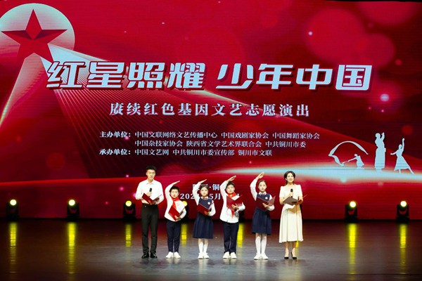 2024年5月30日,正值习近平总书记给陕西照金北梁红军小学学生回信6周年。为深入学习贯彻习近平文化思想,全面落实中国文联十一届四次全委会精神,由中国文联网络文艺传播中心、中国戏剧家协会、中国舞蹈家协会、中国杂技家协会、陕西省文联、中共铜川市委共同主办,中国文艺网、中共铜川市委宣传部、铜川市文联承办的 “红星照耀 少年中国”——赓续红色基因文艺志愿演出在陕西省铜川市铜川剧院举行。