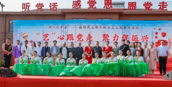 5月16日,由大连市文明办、大连市文联、大连市农业农村局联合主办的“艺”心跟党走 聚力促振兴——“到人民中去”新时代文明实践文艺志愿服务演出在大连市普兰店区丰荣街道办事处杏花村举行,为广大市民呈现了一台戏剧、音乐、舞蹈、曲艺、杂技、诗朗诵等多艺术门类交融、艺术样式新颖的文艺演出。