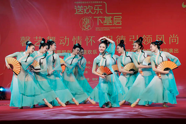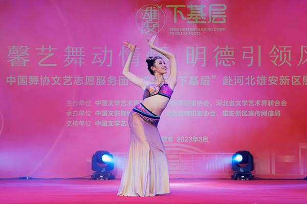 3月15日,“馨艺舞动情怀 明德引领风尚”中国舞协文艺志愿服务团“送欢乐·下基层“赴雄安新区慰问演出举行。图为演出现场。