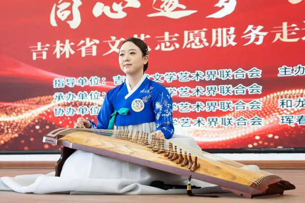 演出伊始,朝鲜族民歌《桔梗谣》婉转悠扬,伽倻琴演奏空灵动人,与优美的长鼓舞交相辉映;长唢呐独奏《热风》气势磅礴、声彻云霄;伴着朝鲜族歌曲《我们是一家人》的动人旋律,台下乡亲们纷纷起身共舞……一个个极具朝鲜族特色的节目让乡亲们倍感亲切,瞬间拉近了与观众的距离,现场掌声不断。龙井市开山屯镇的乡亲们也带来舞蹈《迎酒欢歌》《山河美》,用欢快舞姿抒发幸福生活的喜悦,礼赞祖国边疆的壮丽风光。