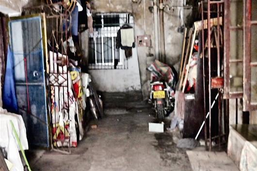 图为:恽代英故居内堆满杂物