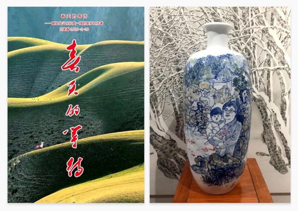 白建春摄影作品《春天的等待》(左) 张甘霖创作的抗“疫”陶瓷作品《解封后的第一次出游》(右)
