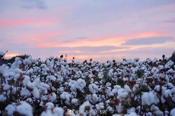 新疆一望无际的棉田