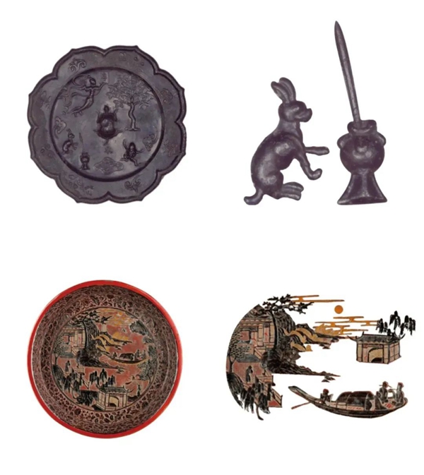 上图为【月宫铜镜】下图为【堆彩赤壁赋漆盘】 图片来源:国家博物馆