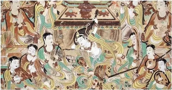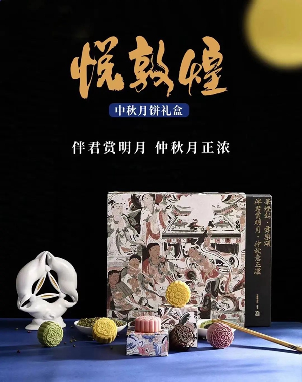 敦煌研究院推出的礼盒以莫高窟唐代第112窟东侧《伎乐图》为设计蓝本,以舞乐齐奏的画面营造与君共赏明月的东方意境。