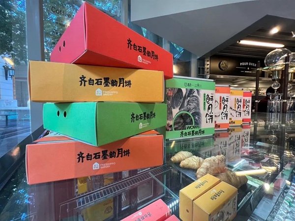 中国美术馆文创中心与盒马烘焙联合推出了“齐白石墨韵月饼”,将国画这种传统中国艺术形式与传统时令点心相结合,该系列共有4个口味,分别对应齐白石的《群虾》、《溪水小桥》、《芙蓉游鸭》、《春山图》、《咸蛋小虫》五幅名画。
