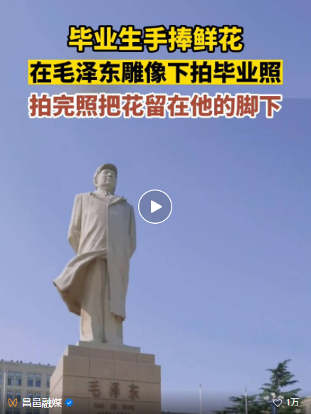 在毛泽东雕像下拍摄毕业照,