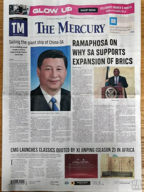南非《水星报》刊登习近平的署名文章。(总台央视记者周涛提供)