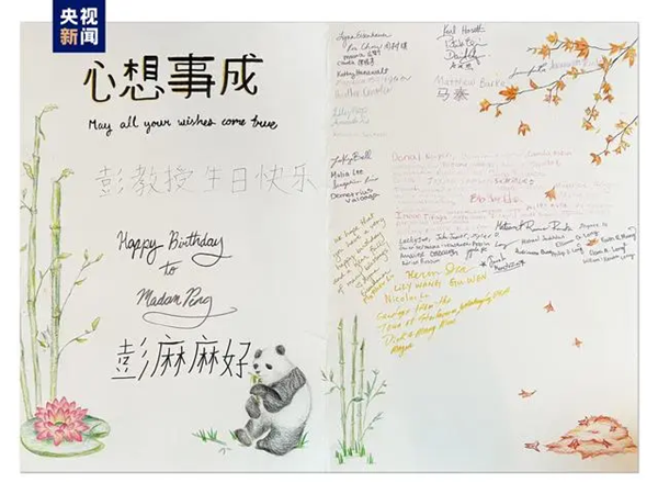美国华盛顿州塔科马市林肯中学合唱团学生为彭丽媛精心准备的生日贺卡