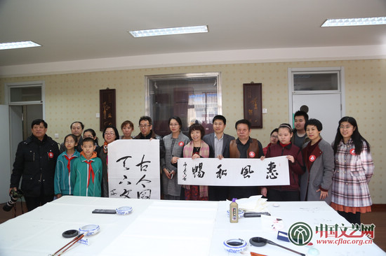 在展览路第一小学,中国书协外联部主任张艺群以及首都师范大学教授魏家川在指导学生书法技巧的同时亲自示范,挥毫泼墨写下了《晴耕雨读》《宁静致远》《博观约取》《崇德力行》等作品赠予学校。学生们围在艺术家身边,仔细观看,不时提出各种问题。来自中国中国美协的年轻美术家逄羽、刘婷则给学生们上起了生动的美术课,并示范了山水画中常见的石头、树木等绘画技法。孙明亮、张希红、朱宝祺3位来自中国摄协的老师代表中国摄协摄影函授学校给学生们赠送了《青少年摄影教程》以及中国梦主题摄影海报。