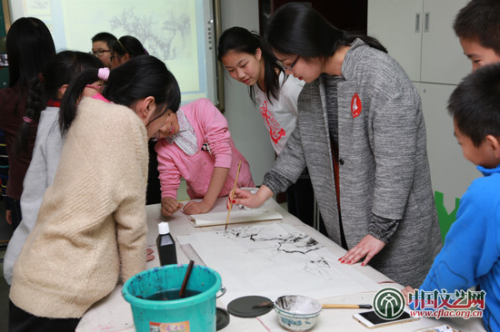 青年美术家逄羽教授学生们山水画的技法 朱宝祺 摄