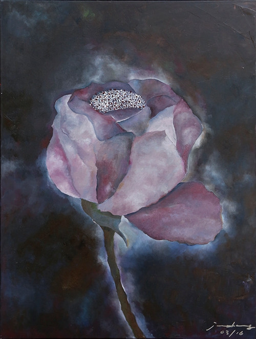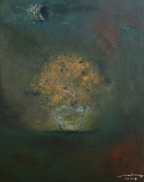 这幅画面上的形体全都笼罩在一层略显阴郁的氛围下,即便如此,画家仍然义无反顾地认为这些花,“尽管有时被误解,还是坚持浇水,即使在痛苦中刺破了皮肤”,此言恰到好处地概括了张钧画作不可多得的特质,预示着面对焦虑状态下的人类景况,人如何有尊严地生存?
