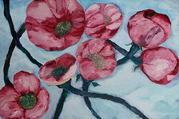 众多的画作中,张钧比较有代表性的作品《徘徊在悲伤中的花瓣》、《红色》、《花的种子》和《蓝色植物》构成一个“花”的系列,主题的接近、处理的方式以及暗郁的色调此起彼伏,遥相呼应着“刺破了皮肤”的回声,内在的痛楚印证花瓣发出的尖叫声;《领悟》、《镜子》和《小熊娃娃》在主题和意象上自成一体,简洁的布面上看似简单的器物,出乎意料地散发难以言说的神秘感。