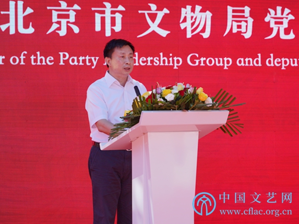 图为北京市文物局副局长白杰致辞,希望首都非遗及老字号文化对人的浸润从场馆内延伸到祖国各地,助力北京“博物馆之城”建设和全国文化中心发展。