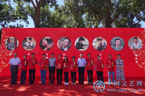 图为北京金漆镶嵌博物馆授予中国工美行业艺术大师柏德元(已故),北京市工艺美术大师王喆希(已故)、刘锡恒、李德伦、胡昕、周义、敖明、李宝生、杨鸿顺、王学兵“金漆镶嵌终身成就奖”。