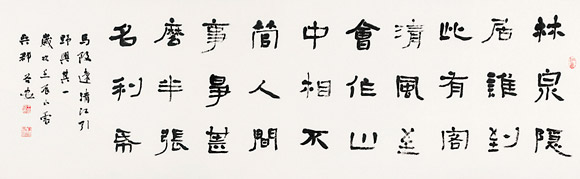 王国安系吴门中青年书法名家,师承宋季丁,取法高古,主攻汉碑。早在上世纪八九十年代,他的书法便屡屡在全国书法大赛中摘金夺银。如果说之前他的隶书多为人瞩目和称道,那么经过多年的积累、探索、蜕变,他更多地将汉碑的质朴、厚重自然地融化进行书的流动中,使得其行书更加耐看、含蓄,更加富有表现力。王国安始终坚信经典的魅力,坚守和传承着碑帖经典的文脉,不盲目跟风,在当下展厅文化笼罩着“形式至上”的时代氛围中,王国安却能保持独立的思考和审美追求。(易斋)