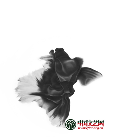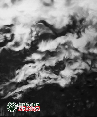 “墨是在我个人所认识的美学体系里和东方普世美学体系里最能以科学性、客观性来呈现的无意识形态”,所以冯一尘选择墨作为媒介。他在画室以黑白摄影的方式拍摄了许多墨汁滴入水中瞬间所产生的四散效果图,烟也是如此。为了找到最满意的,拍摄往往达到几千张,再依据不同时刻内心意识流动形态的变化,选择最贴近形态的一张,作为创作原型。“墨滴入水中是无意识的形态,而对对采集图像的选择使用却是有意识的。”冯一尘说。