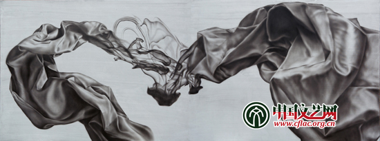 如同文学中常说“形散神聚”,虽内容自由却有的放矢。比如,他挑选出生活的片段,却使其脱离原来的语境,使材料受到艺术家的重新支配、建构。一柱香、一滴墨、一块石都能映射出艺术家的生活气质和艺术灵感。“在画面上,冯一尘以一种看似公然沉湎于原始素材的方式,不断挑战观众视觉,这便是通常认为现代艺术无意义和无意向的意义所在。还有值得一提的是,冯一尘自始至终都将画面保持着至美的状态,这种对作品的要求甚至成为他的一种执念,也可以说是对于古典精神的执念。”策展人黄姗表示。