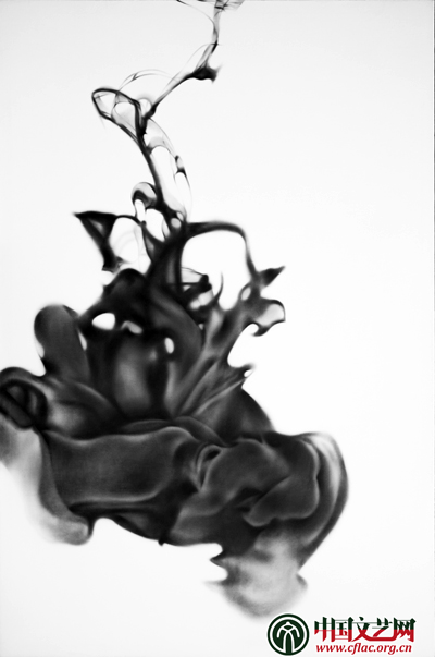 关于梦是什么,在青年艺术家冯一尘看来,“梦境也好,梦想也罢,其实无意识的体会人生,它既是梦”,而“人之一生,有多少事,其实是发生在梦与醒之间。归根究底,世间并无真假之分,只有虚实之分”,于是在《内观》冯一尘个人作品展上,墨汁无意识地在水中扭动它灵动的身躯;墨花伸展开来,似爽滑的丝绸,在柔美中展现着肆无忌惮的张力;虚无缥缈、转瞬即逝的烟和雾被放大,感观也随之放大,挑战着观众的视觉。