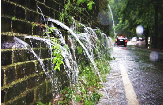 南京曾遇到暴雨,很多人看到城墙墙体里往外喷水,怀疑是城墙被凿空了。实际上并不是,这正是当时设计的排水明沟。每年暴雨,雨水渗入历史悠久的明城墙墙体内,经由其排水系统喷吐而出,形成了独特的“龙吐水”景观。