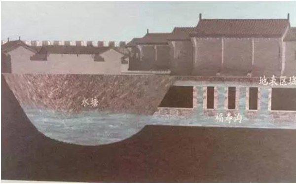 当时的赣州城内有数百口可供蓄水的水塘,福寿沟的修建,正好将它们全部连通起来,使之成为活水系。随着雨水流量调节各部分的水容量,减轻下水道溢流,利用天然地形的高低之差,采用自然流向的办法,使城市的雨水、污水排入江中和水塘内。同时,刘彝最为神奇的设计当属“水窗”,它可以“视水消长而启闭”。在江水低于排口水位时,可以借排口出水的水力冲开闸门,使排水顺利排入江中;在江水高于排口水位时,能借江水的水力关闭闸门,防止倒灌。