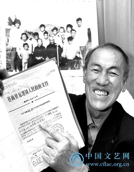 农民喜悦地展示建房批复文件 图片来源:《中国农民城》