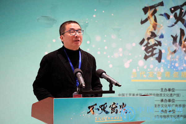 吴明俊在致辞中首先感谢馆方对本次展览的大力支持并表示,龙泉青瓷产品兼具实用和收藏价值,成为风靡全球的时尚,实现藏品全球化的同时也一定程度上助推文化全球化,向世界展示古老而辉煌的中华文化、东方文明。本次展览走进国家级文化殿堂,是对龙泉青瓷的高度认可,也是对精心制作、传承技艺的工匠们的肯定,期望以此为契机,进一步推动龙泉青瓷的创造性转化、创新性发展。希望未来有机会组织更多非遗项目走进中国工艺美术馆 中国非物质文化遗产馆。