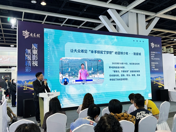3月11日下午,由珠江电影集团出品的青春励志电影《我,就是风!》在香港国际影视展广东馆内进行推介。影片执行制片人梁柱向现场观众讲述来自广东云浮的“独臂篮球少年”的动人故事,吸引不少来自世界各地的片商们驻足观看。