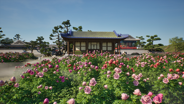 中央美院圆明园研究中心师生运用最新计算机技术创作的数字绘画——《圆明园四十景图数字化复原设计》中的《镂月开云(牡丹台)牡丹胜景》和《天然图画桃花胜景》也参加了展览。他们将牡丹和桃花等花卉的数字模型与新近复原设计完成的清代官式建筑数字模型融合,并运用了体积雾、光栅等数字造景技术,逼真再现了虚拟世界中皇家园林的春日风华。