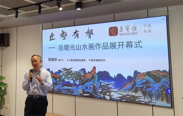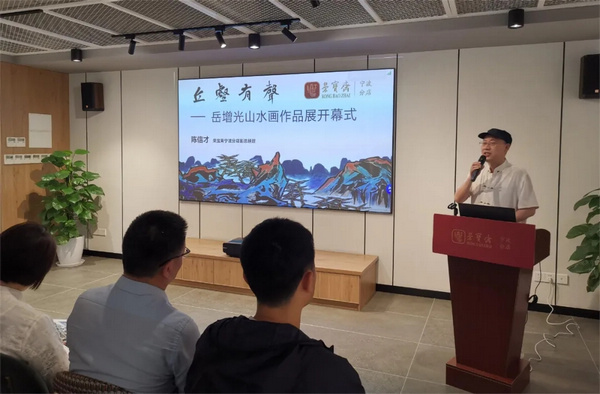 5月25日,由浙江省文化产业学会、荣宝斋宁波分店、宁波逸众文化发展有限公司共同主办的“丘壑有声——岳增光山水画作品展”在荣宝斋宁波分店开展。本次画展以水墨青绿山水题材为主,展出了岳增光近两年来创作的代表性山水画作品共38幅。