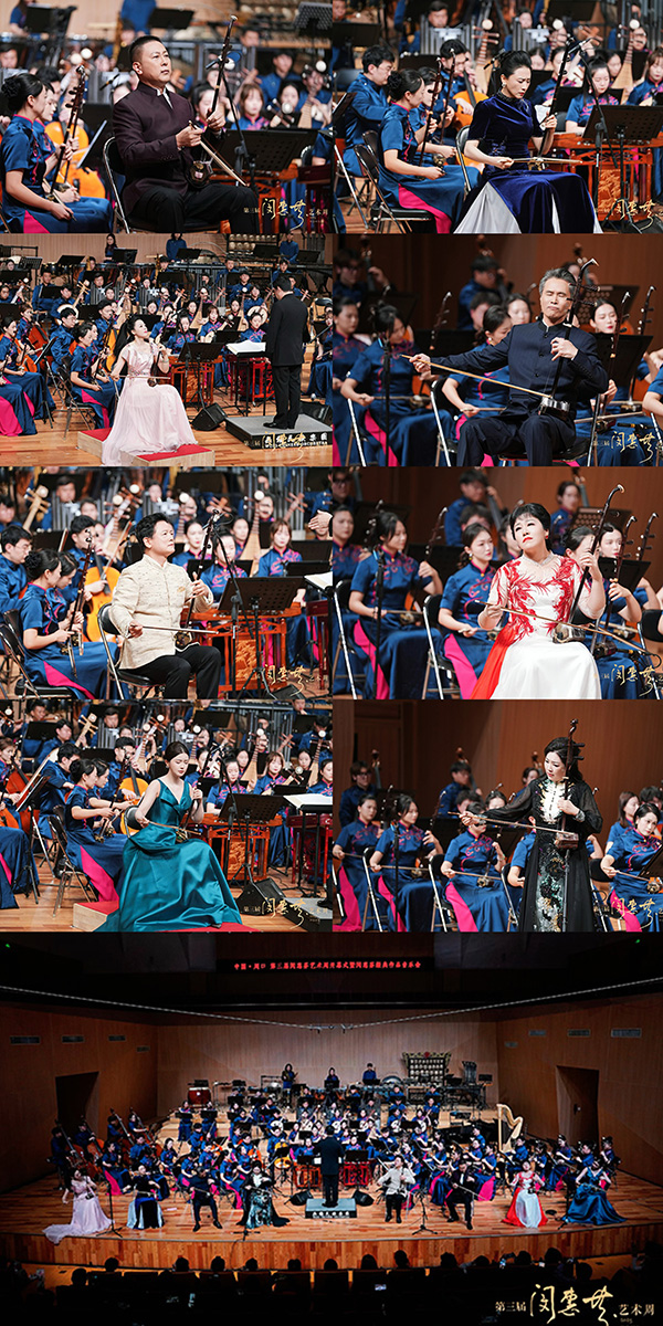 艺术周期间举办的弘毅之光:“此曲只应天上有”——《长城随想》讲述式音乐会由刘光宇主讲,特邀嘉宾刘振学、朱昌耀演奏《长城随想》第一、二乐章,刘光宇演奏《长城随想》第三、四乐章。通过边讲边拉、讲演结合、视听并举、赏析拾味,深入闵惠芬音乐的典范性、时代性、声腔化、人民性。“器乐声腔化”音乐会上,《迷胡调》《逍遥津》《忆秦娥》《寒鸦戏水》《游园》《昭君出塞》《红旗渠水绕太行》等经典作品与《巾帼》《苏园》等新创作品交相辉映,让观众聆听中国民族音乐的血脉传承。
