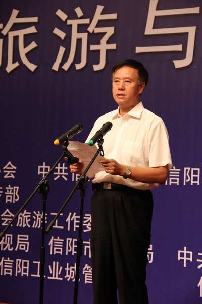 26日上午,旅游电视周暨高峰论坛举行开幕仪式,中国文联副主席、中国视协主席赵化勇,中国视协分党组书记、驻会副主席张显,中国视协分党组副书记、秘书长王锋,中国视协分党组成员、副秘书长张彦民,中央电视台音像资料馆副馆长王甫,中国传媒大学教授刘俊杰,与郭瑞民、乔新江、冯鸣、杨慧中、李水等信阳市领导,以及各地方电视台百余位代表参加开幕式。