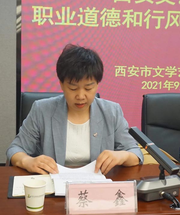 市委宣传部文艺处处长蔡鑫传达《中国文联关于大力推进文艺工作者职业道德建设和文艺界行风建设的意见》