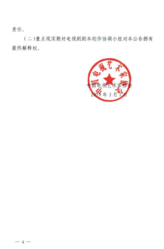 中国视协关于征集重点现实题材电视剧剧本的公告