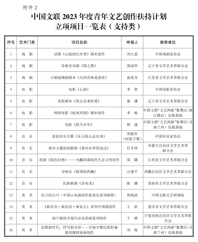 2.中国文联2023年度青年文艺创作扶持计划立项项目一览表(支持类)