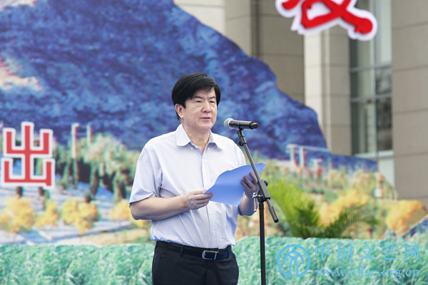 为庆祝宁夏回族自治区成立60周年,8月7日至10日,中国文联文艺志愿服务团将赴宁夏多地开展文艺志愿服务活动。8月8日,由中国文联、宁夏回族自治区党委宣传部、中国文艺志愿者协会主办的“中国梦·宁夏情”庆祝宁夏回族自治区成立60周年——中国文联文艺志愿服务团走进石嘴山市慰问演出在石嘴山市行政中心广场举办。图为中国文联党组书记、副主席李屹致辞。中国文艺网 周春桃 摄