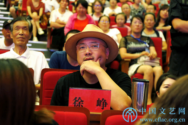 为庆祝宁夏回族自治区成立60周年,8月7日至10日,中国文联文艺志愿服务团将赴宁夏多地开展文艺志愿服务活动。8月7日晚,在石嘴山市举办了书法、音乐、舞蹈、电影、电视等辅导培训活动。图为著名演员、导演、监制徐峥主持电影辅导培训现场。中国文艺网 周春桃 摄