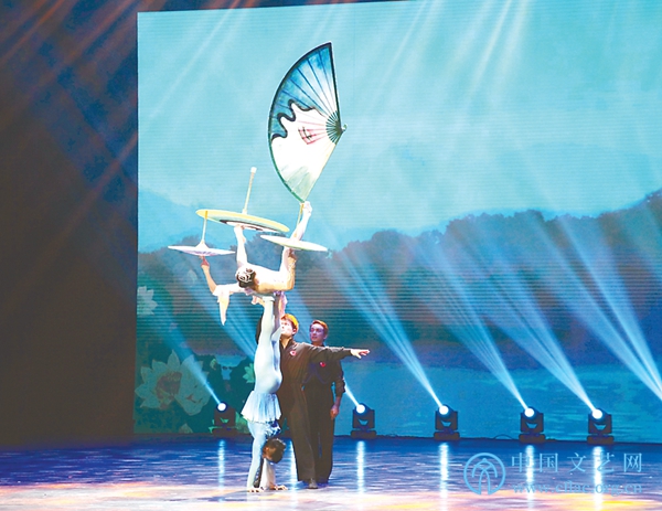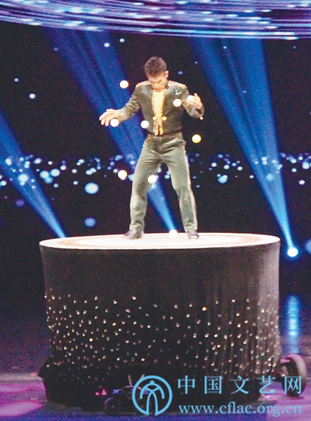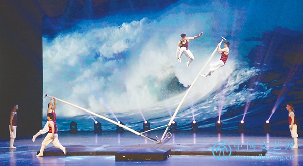 本次展演中国杂技团有限公司带来了两个拿手之作。《雨中狂想——球技》以自由奔放的踢踏舞姿,指尖流动的飞球流星,让人赏心悦目;融合了弗拉明戈、爱尔兰、美式踢踏舞等舞蹈特点的表演风格,充满异域风情,引起现场观众的啧啧惊叹。《九级浪——杆技》则刻画了在茫茫沧海中一群乐观豁达而又勇敢无畏的年轻水手。男演员的阳刚加入了女演员在杆上表演的柔美技术,成就了节目刚柔相济的风格。