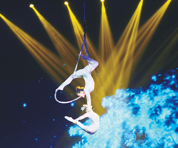 其中由西演·西安战士战旗杂技团带来的杂技《大鱼》将杂技、柔术、舞蹈融为一体,演员要在十几米高空中可升降旋转的吊环上完成一系列高难技巧动作,不仅展现了杂技的惊险,还结合了地面极限柔术、软功的特点,呈现出浪漫唯美、灵动飘逸的视觉效果。