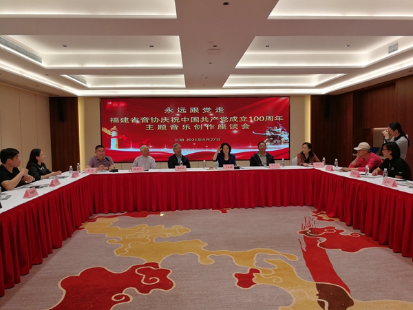 27日晚,采风团在三明市召开庆祝中国共产党成立100周年主题音乐创作座谈会。