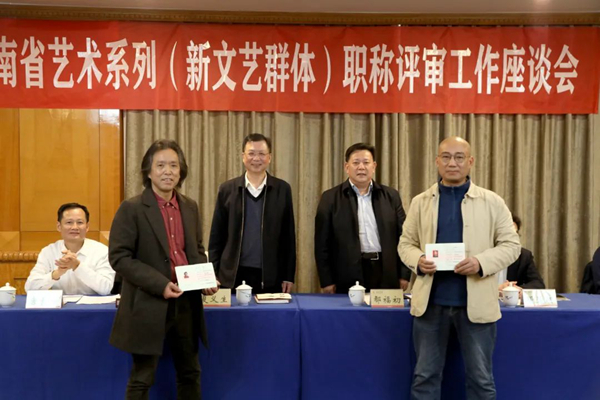 会上,为我省首批获得一、二级美术师的新文艺群体代表颁发了职称资格证书,4位新文艺群体代表作了发言。